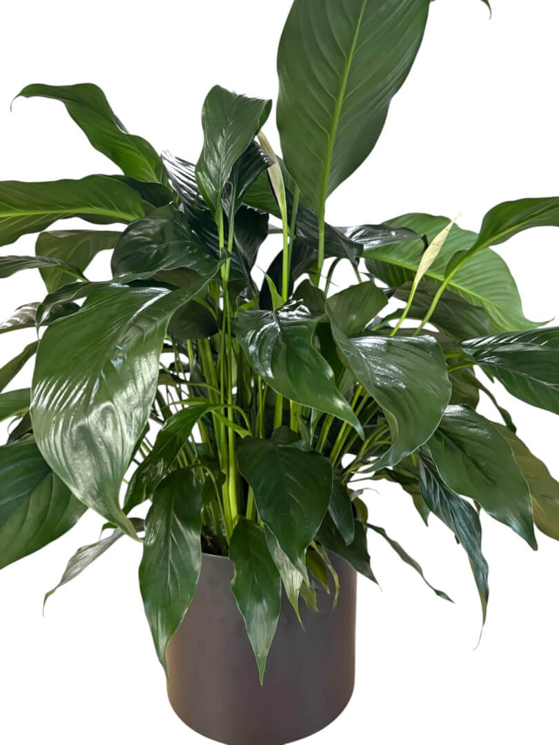 Entretien: Pour l'entretien du spathiphyllum, il faut l'arroser régulièrement sans excès, en laissant sécher le terreau en surface entre deux arrosages, et en réduisant les apports d'eau en hiver. Il préfère une lumière vive mais sans soleil direct, un rempotage tous les deux ou trois ans et un apport mensuel d'engrais pour plantes fleuries durant la saison de croissance. Maintenir une bonne humidité ambiante par vaporisations ou en plaçant le pot sur un lit de billes d'argile peut être bénéfique.